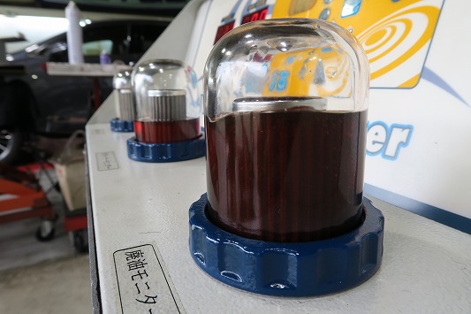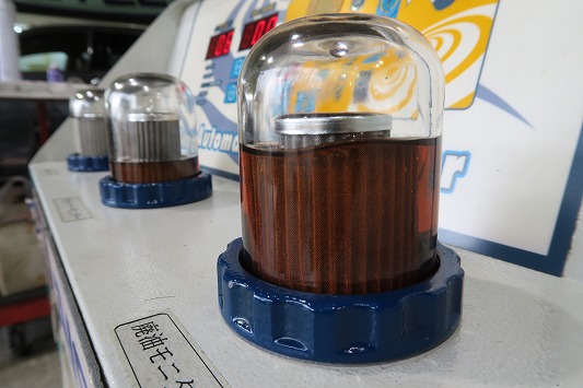 ・中央ビーカーが作業前の廃油