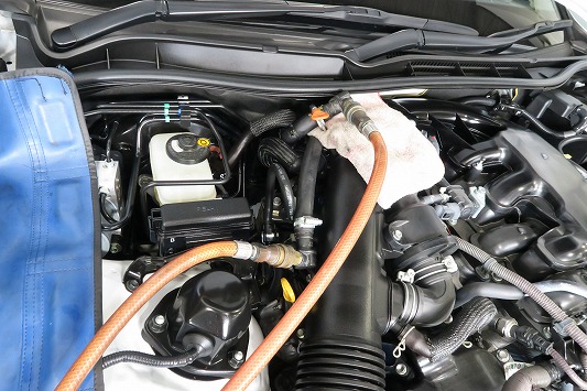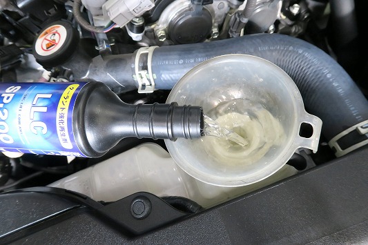 最後にLLC再生強化剤を注入して、防錆消泡性能を強化します。