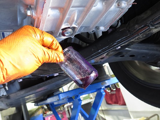 問題なしを確認後、リフトアップしてCVTFのサンプリングを行い、作業スタート。