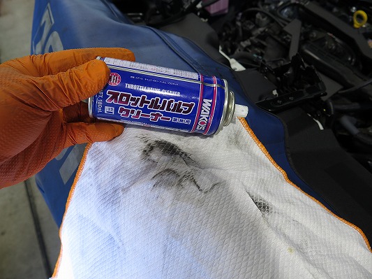 このお車は、走行距離1万8千kmですので、多量にデポジットは付着していませんでしたが、走行距離が増えてくるとスロットルボディにカーボンが付着します。