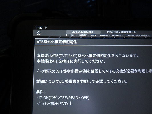 この車両は、フルードの劣化度をECUがカウントしていますので、初期化して作業完了。
