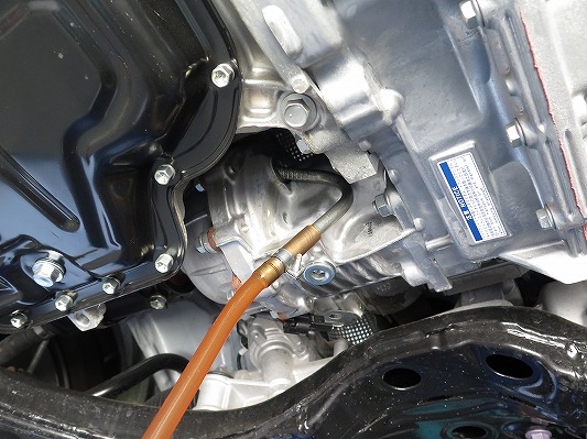 洗浄中のATFの状態が一目で確認出来るのも、圧送式交換の大きなメリットです。
