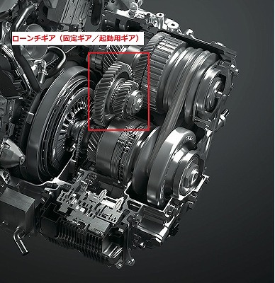 発進・低速域では「ローンチギア(固定ギア/起動用ギア)」が作動。