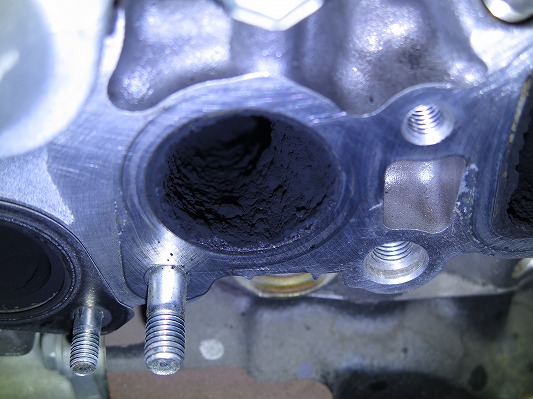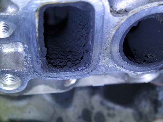 エンジンポートやインテークバルブ周辺はそこそこの煤堆積。