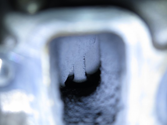 エンジンポートとインテークバルブ周辺はDSC(ドライアイスショットカーボンクリーニング)が出来ないので手作業で軽く煤掃除。