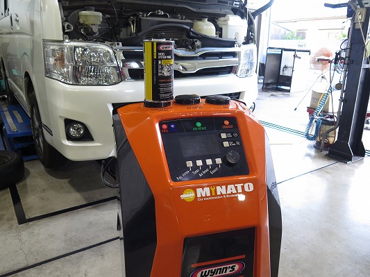 マルチサーブという特殊な機械を使って、このハイエースの(インテーク・インジェクター・DPF)をシステム洗浄しますね。