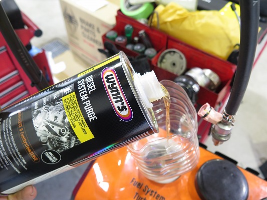 ・マルチサーブに燃料系ケミカル剤のディーゼルシステムパージを200mlほど投入。