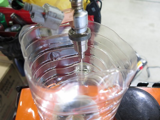 ・ケミカル剤がインジェクター内部を洗浄し、噴霧口から吐出。