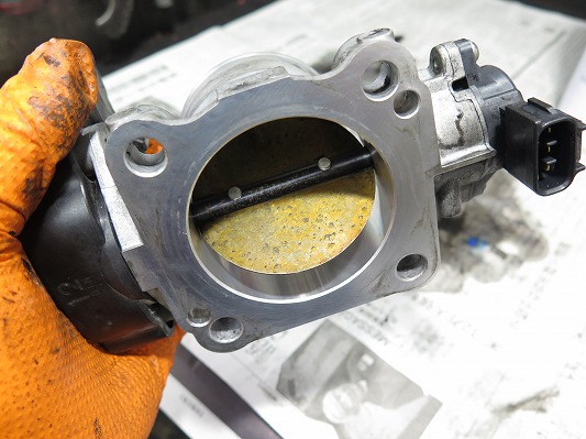 各アクチュエーターを強制作動させて、スワールコントロールバルブの動きを確認。 バルブのシャフトが固着して、コントロールバルブの動きが渋い。