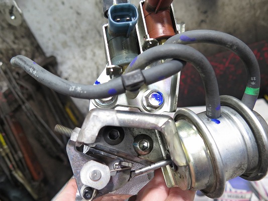 EGRバルブやそれを制御する2連ダイアフラムとバキュームスイッチ。