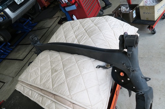 ブッシュが破損していると必要以上にアクスルビームが捻じれて、徐々にビーム自体が歪んでいくんですよ~。