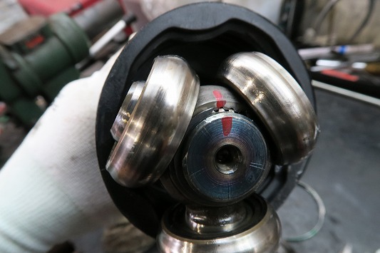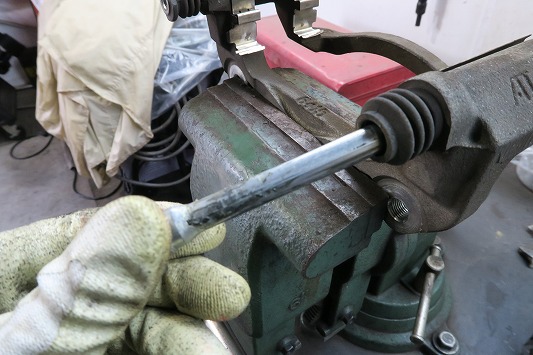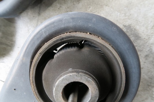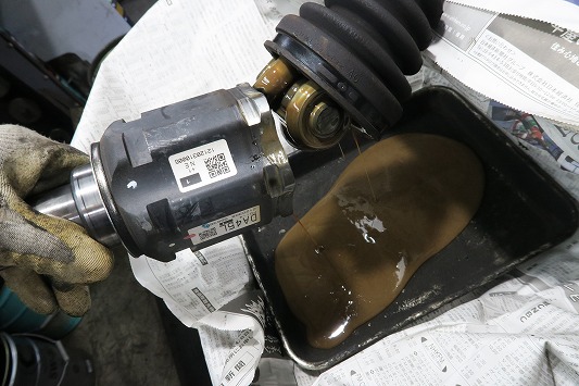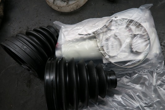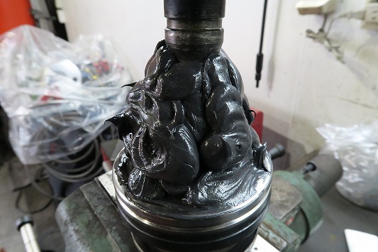 硬化したブーツは破棄し、ドライブシャフトを洗浄します。