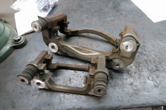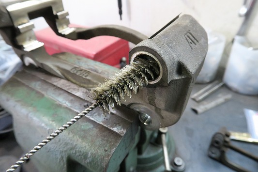 スライドピンのグリスを洗い流して、新しいグリスを注入。