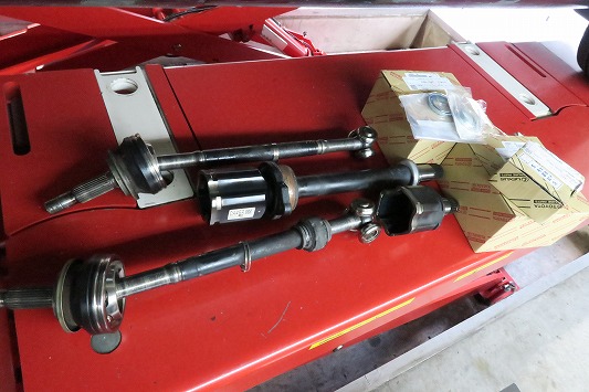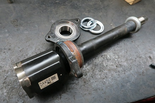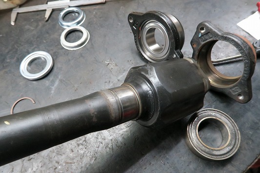 ドライブシャフト右側の中間シャフトベアリングを圧入交換。