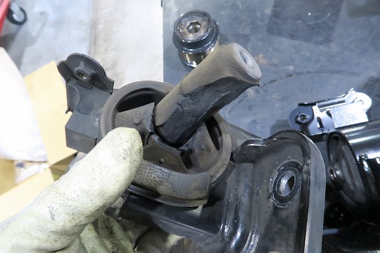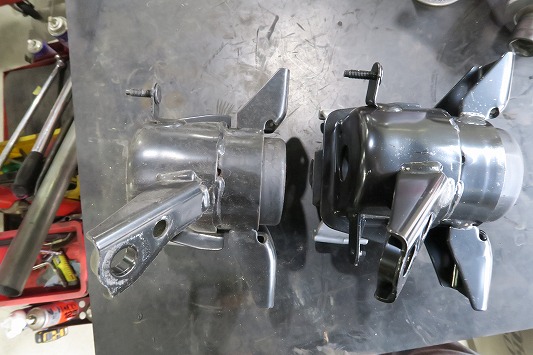 またエンジン側のマウントも新旧を比べると、硬さが全く違う。