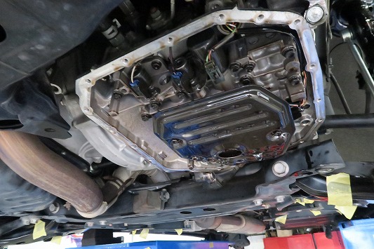 まずはフルードの状態を確認してから、オイルパン洗浄ストレーナー交換一式を行います。