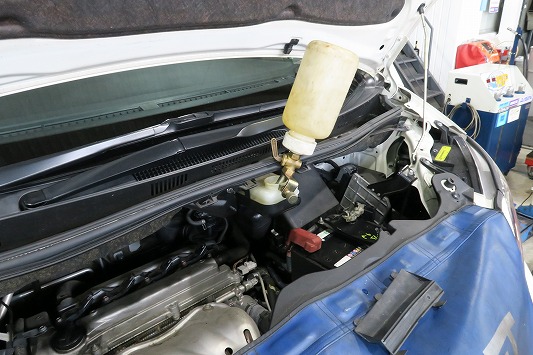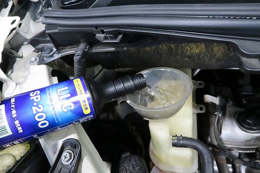 最後にLLC再生強化剤注入で防錆消泡性能を強化し、エア抜き作業。
