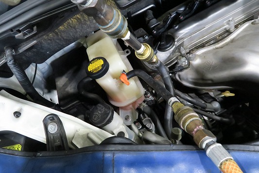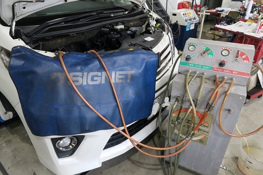 ラジエターリフレッシャーで交換がしにくいLLCを全量圧送式で交換します。