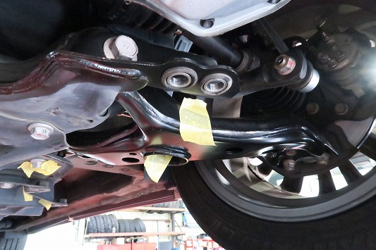 これをしないとブッシュが捻じれたまま走行する事になるので、新品ブッシュが早期破断しますよ。