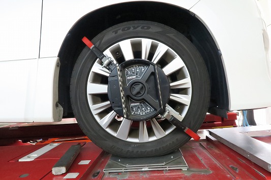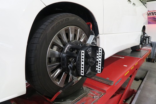 前回ブログでサスペンション整備を実施したので、アライメントリフトで1G締付をします。