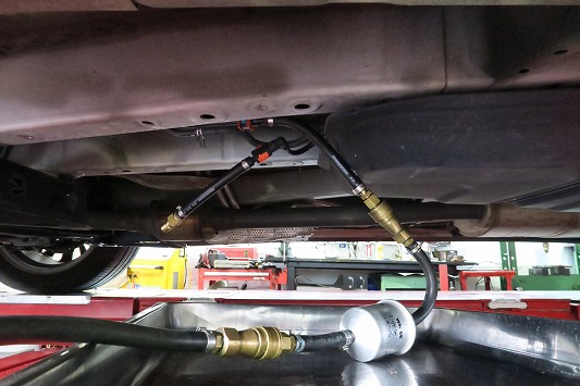 NC-RFリンシングフルードで全量イッキに圧送式交換します。