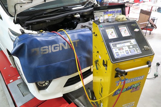 カーエアコンリフレッシュαでエアコン冷媒ガスをリフレッシュ。