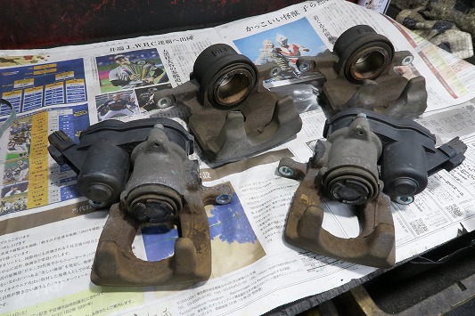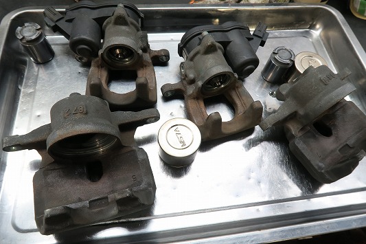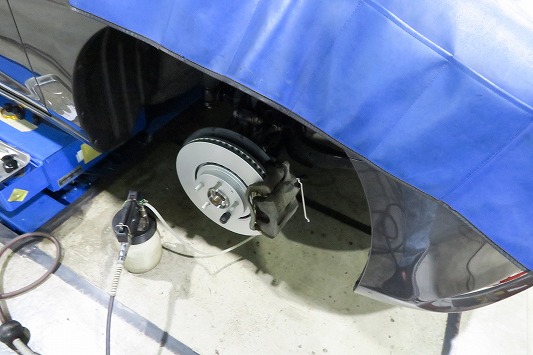 リアの電動パーキングキャリパーはエアの抜けが悪いので、スキャンツールからパーキングモーターを何度も駆動させてエア抜き作業を実施。