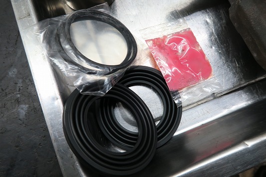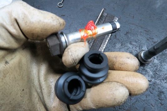 スライドピンの古いグリスは洗い流して、新しいグリスで組立。