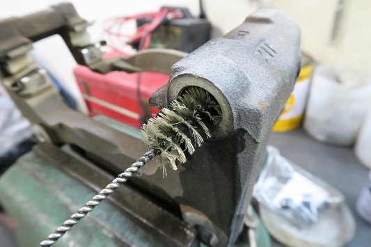 面を均一に研磨し、防錆用に薄くブレーキグリスを塗ります。