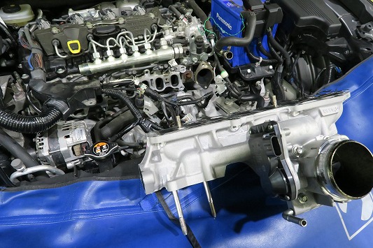 世界で初めてドライアイス洗浄機を用いたエンジン インテーク煤除去作業。