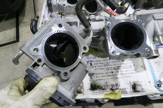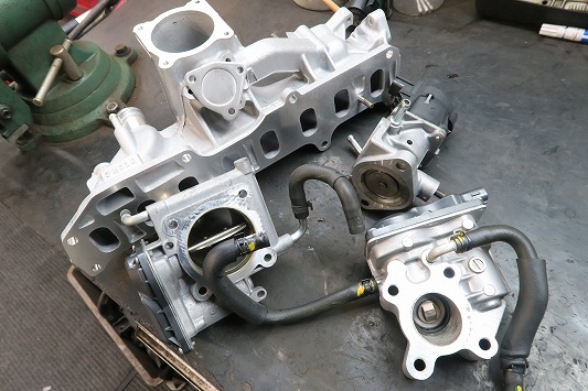 ・インテークマニホールド入り口・吸気シャッターバルブ周辺に煤堆積が多い。