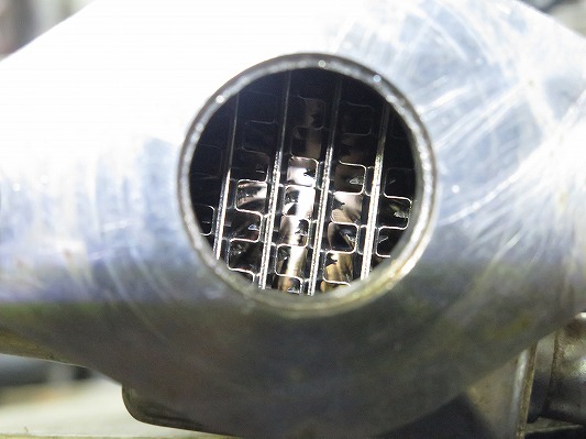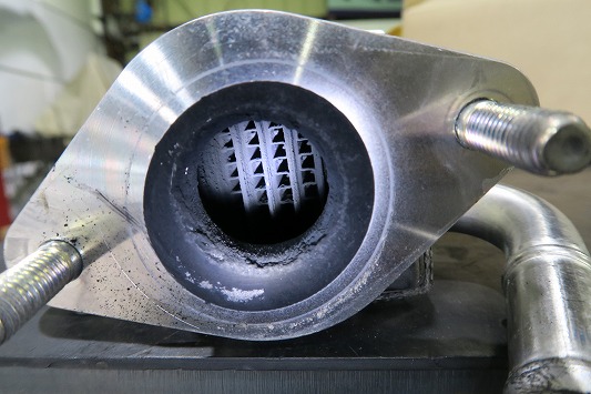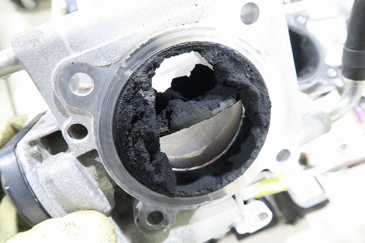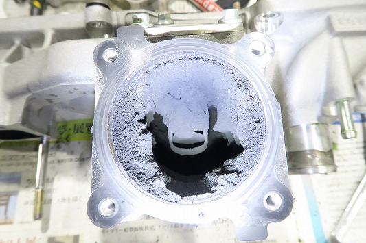 使用環境やメンテナンス頻度・アクセルワークなどで、煤が堆積する箇所が変ります。 今回はよくあるパターンの堆積ですね。