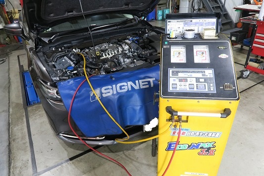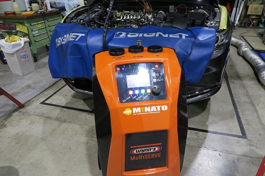 ラジエターリフレッシャーで、エンジン・ラジエター・ヒーター内のLLC冷却水を全量交換。