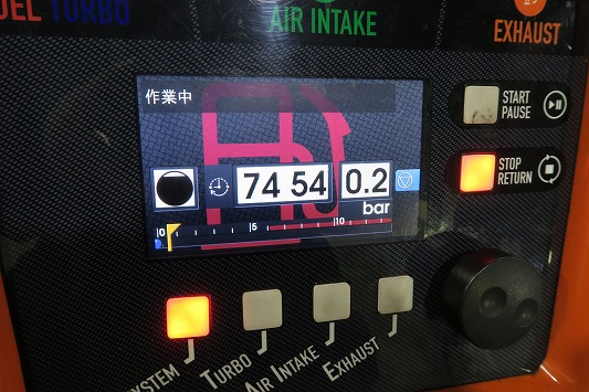 エンジンを約75分間作動させて、ゆっくり確実にフューエルラインを洗浄していきます。