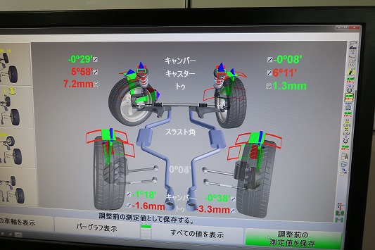 ・リアのスラスト角を調整しながら、ステアリングセンターを調整。