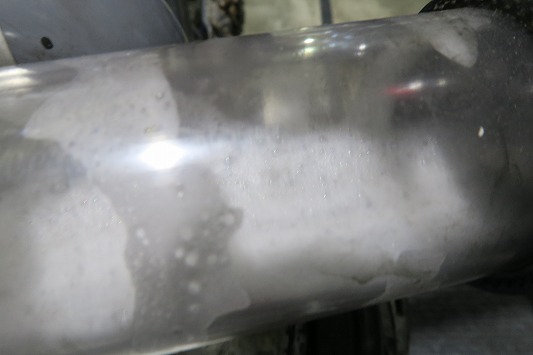 マフラーから猛烈な異臭と廃液が出てきますが、弊社では回収装置を開発し全て回収。